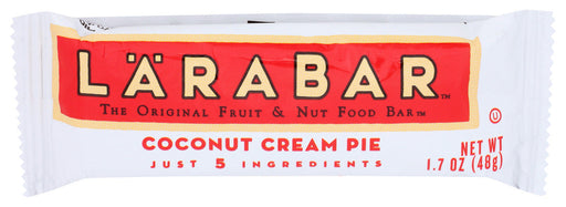 LarabarDescriptionLARABAR's Coconut Cream Pie Bar is made with just 5 ingredients: dates, unsweetened coconut, almonds, cashews, and extra virgin coconut ...